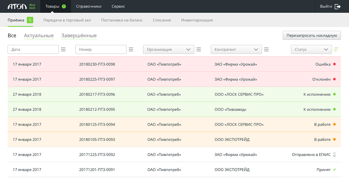 - Рабочее место администратора, где можно редактировать статусы акцизных марок.